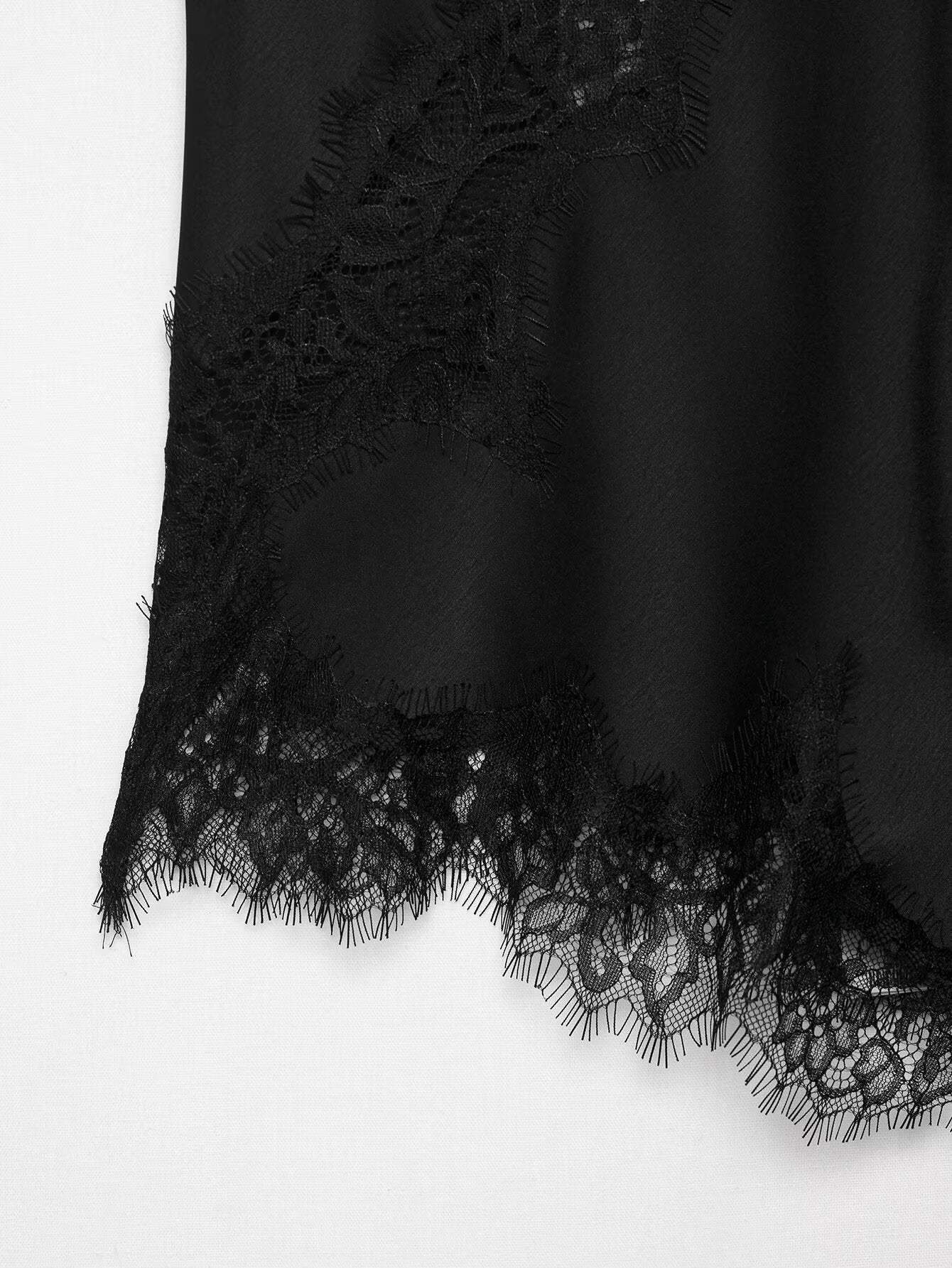 Slim, refined straps enhance the top’s clean, feminine lines. Their understated design keeps the focus on the soft interplay between lace and satin.